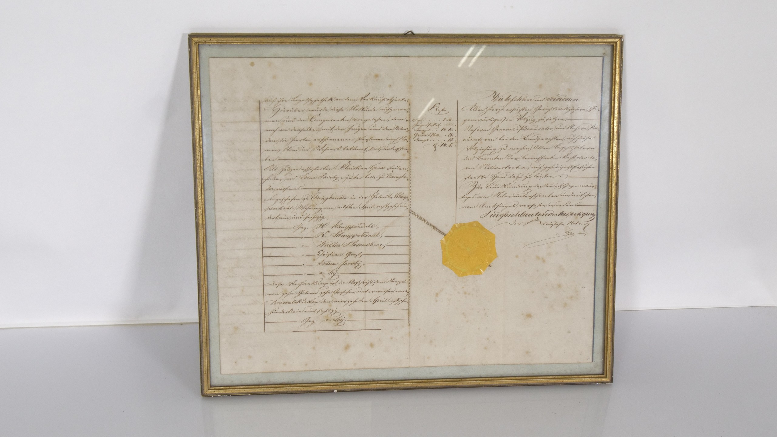 19e-eeuws Duits notarieel document met zegel en lijst