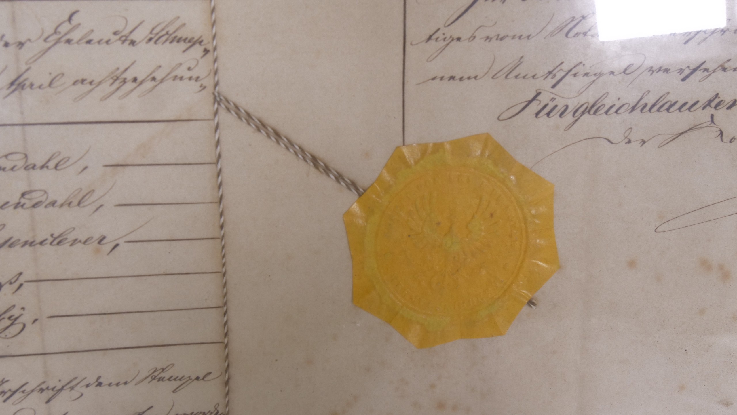 • Origineel geel lakzegel met keizerlijke adelaar (Preußisches Wappen)