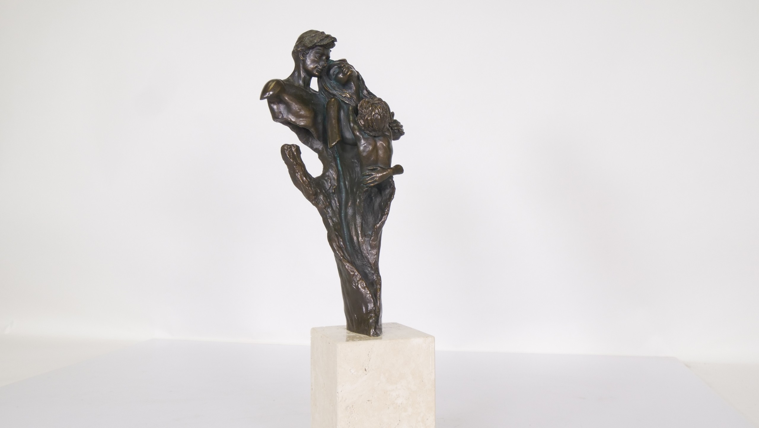 Bronzen beeld “Familie” op marmeren sokkel – Santini, Italië