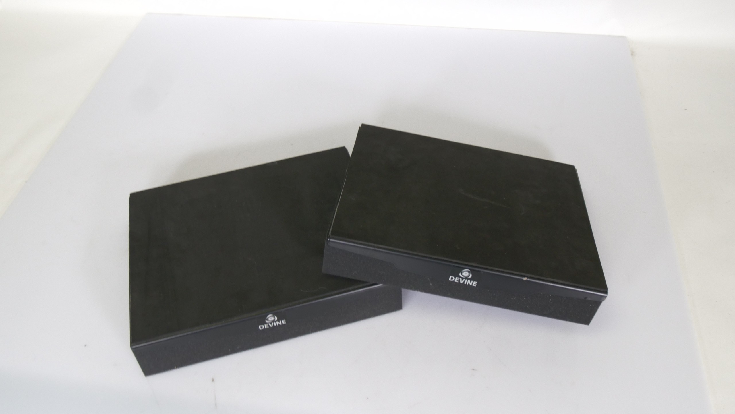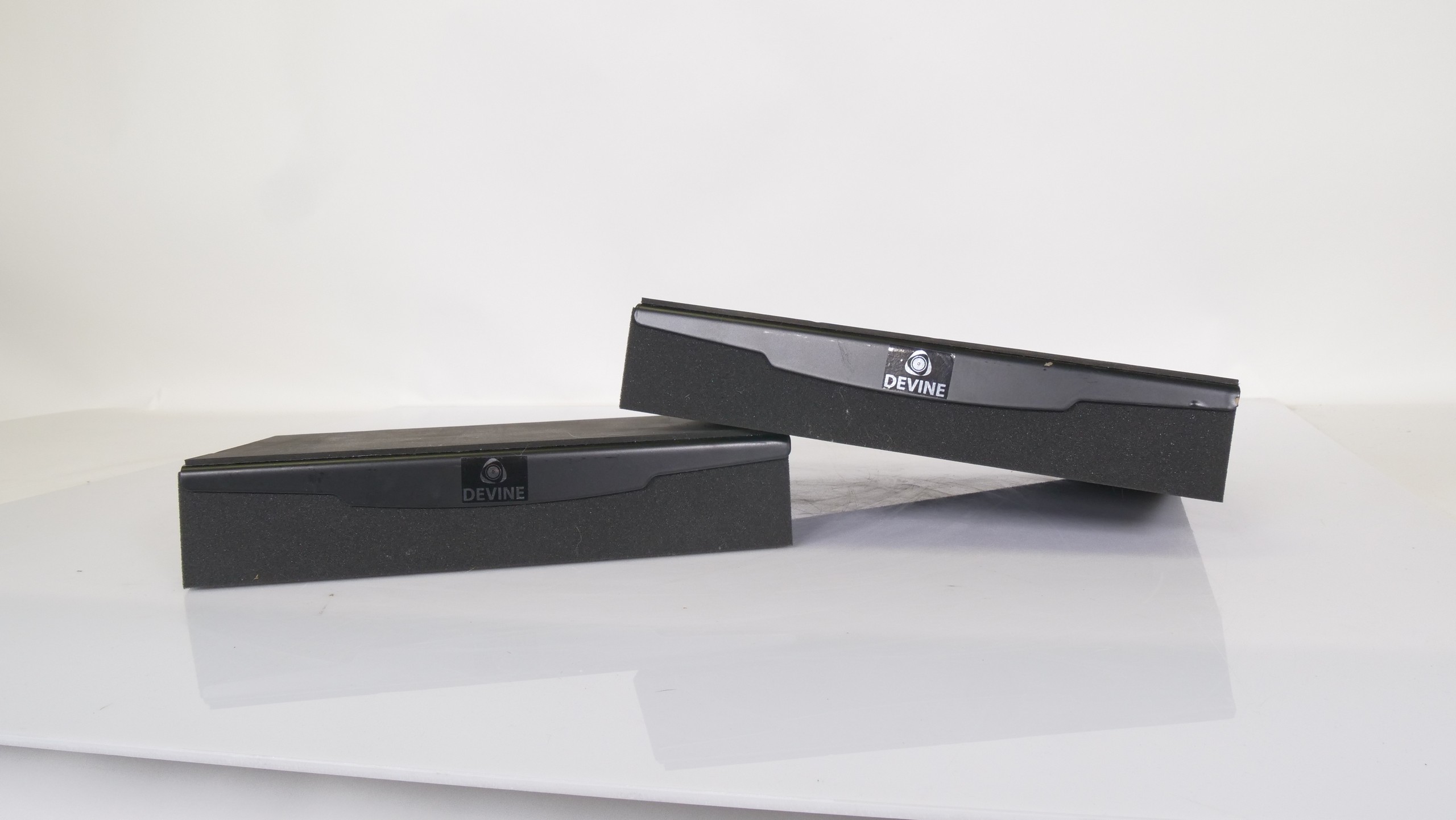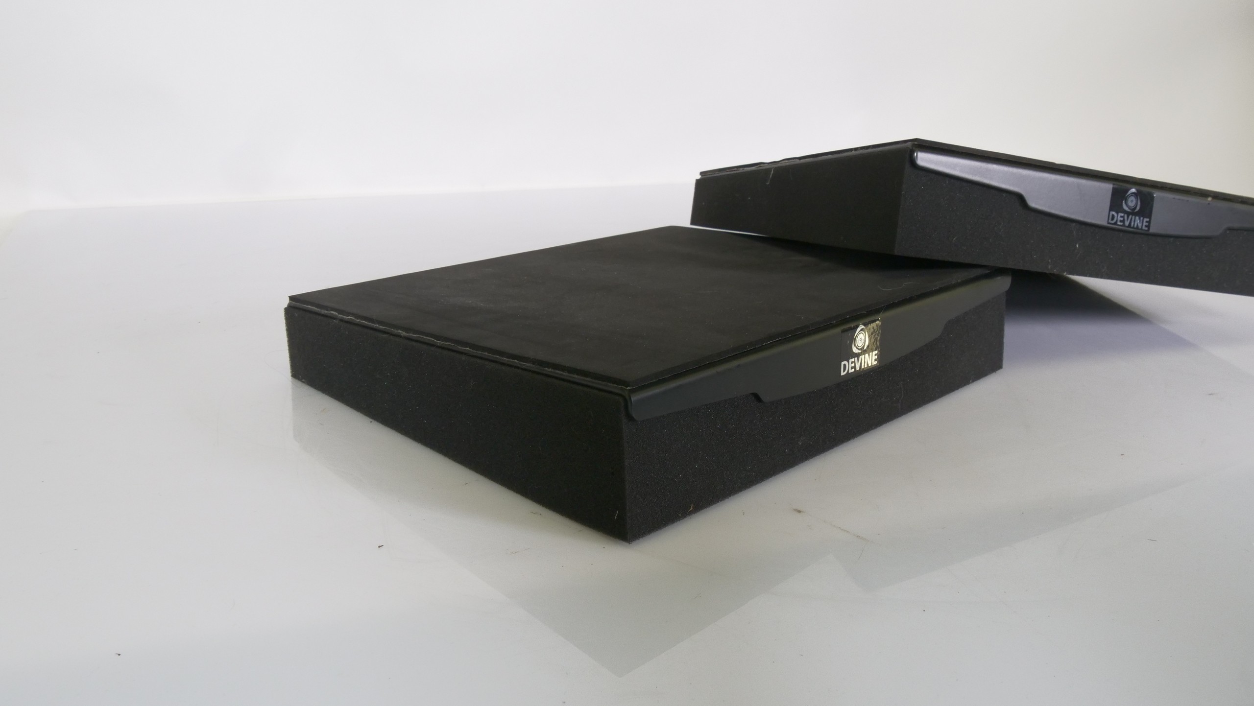 Set van twee Devine monitor isolatie pads, ideaal voor het ontkoppelen van studiomonitoren of luidsprekers van het oppervlak waarop ze staan.
