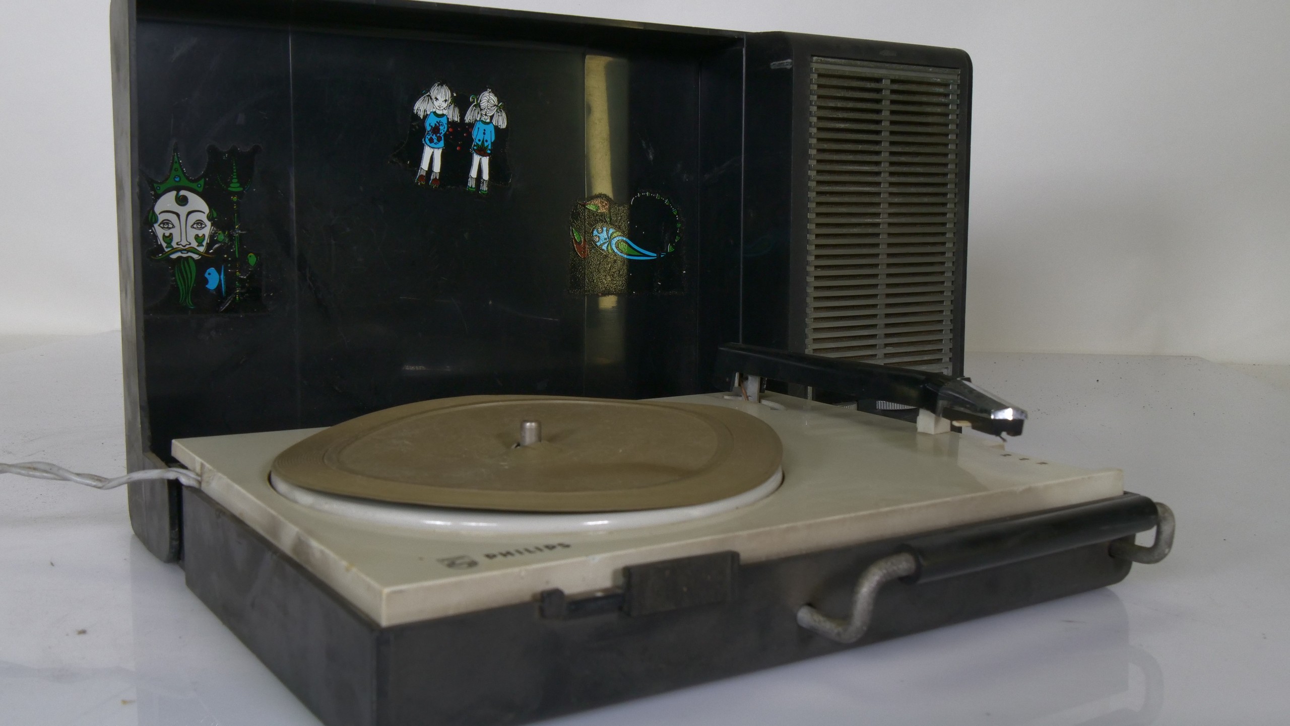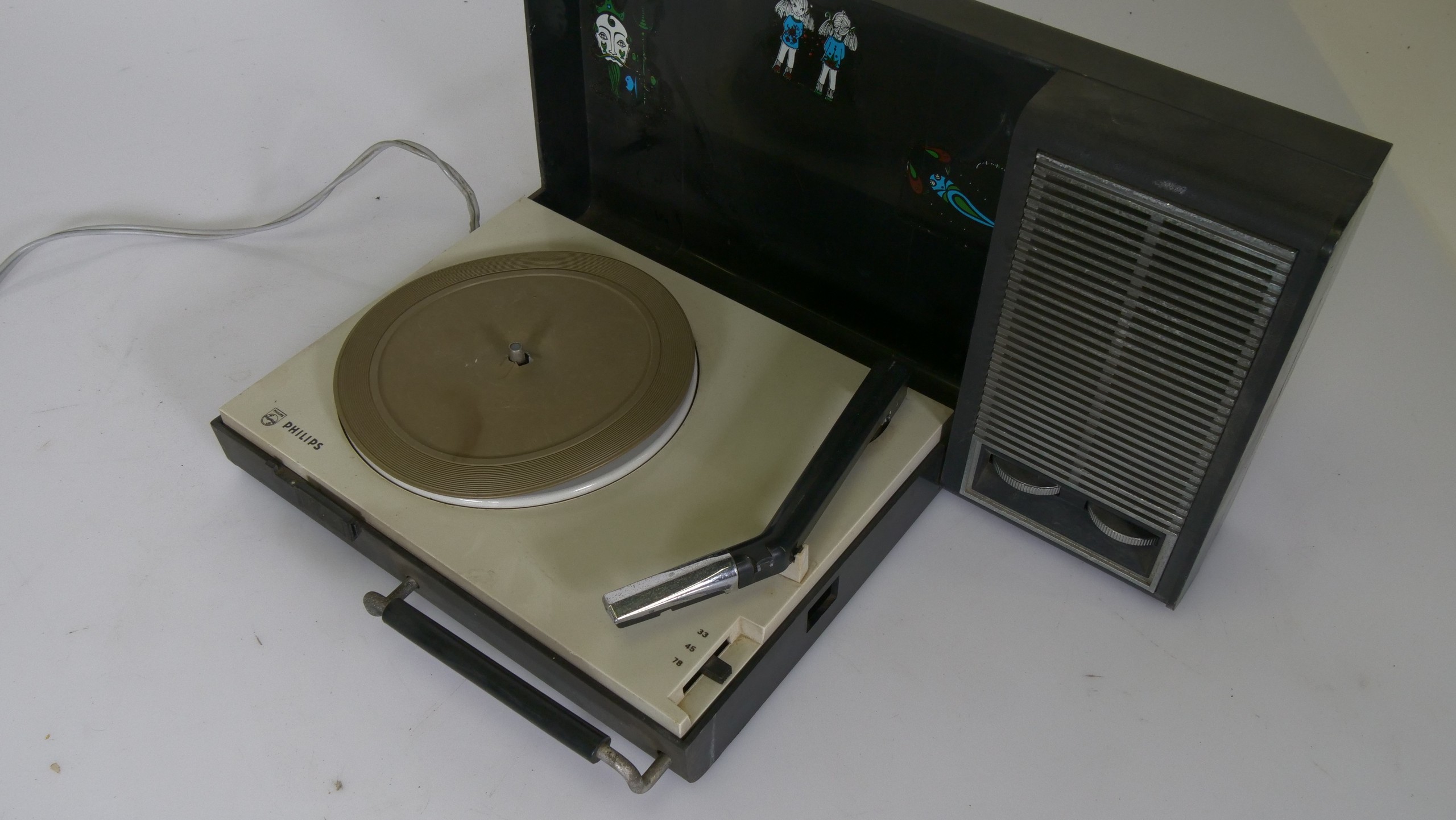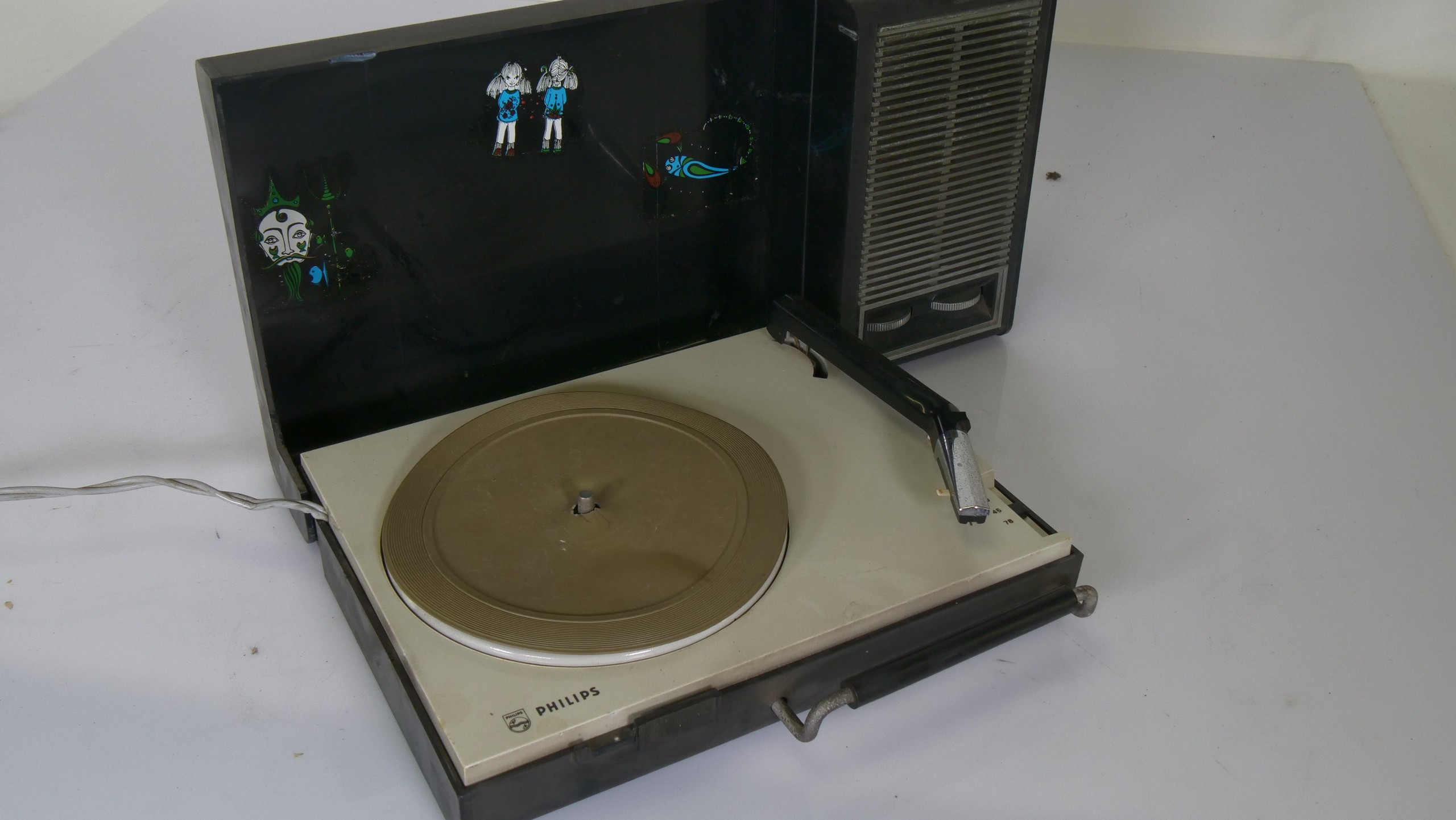 Philips draagbare platenspeler jaren 60 – kofferontwerp met ingebouwde luidspreker (werkt niet)