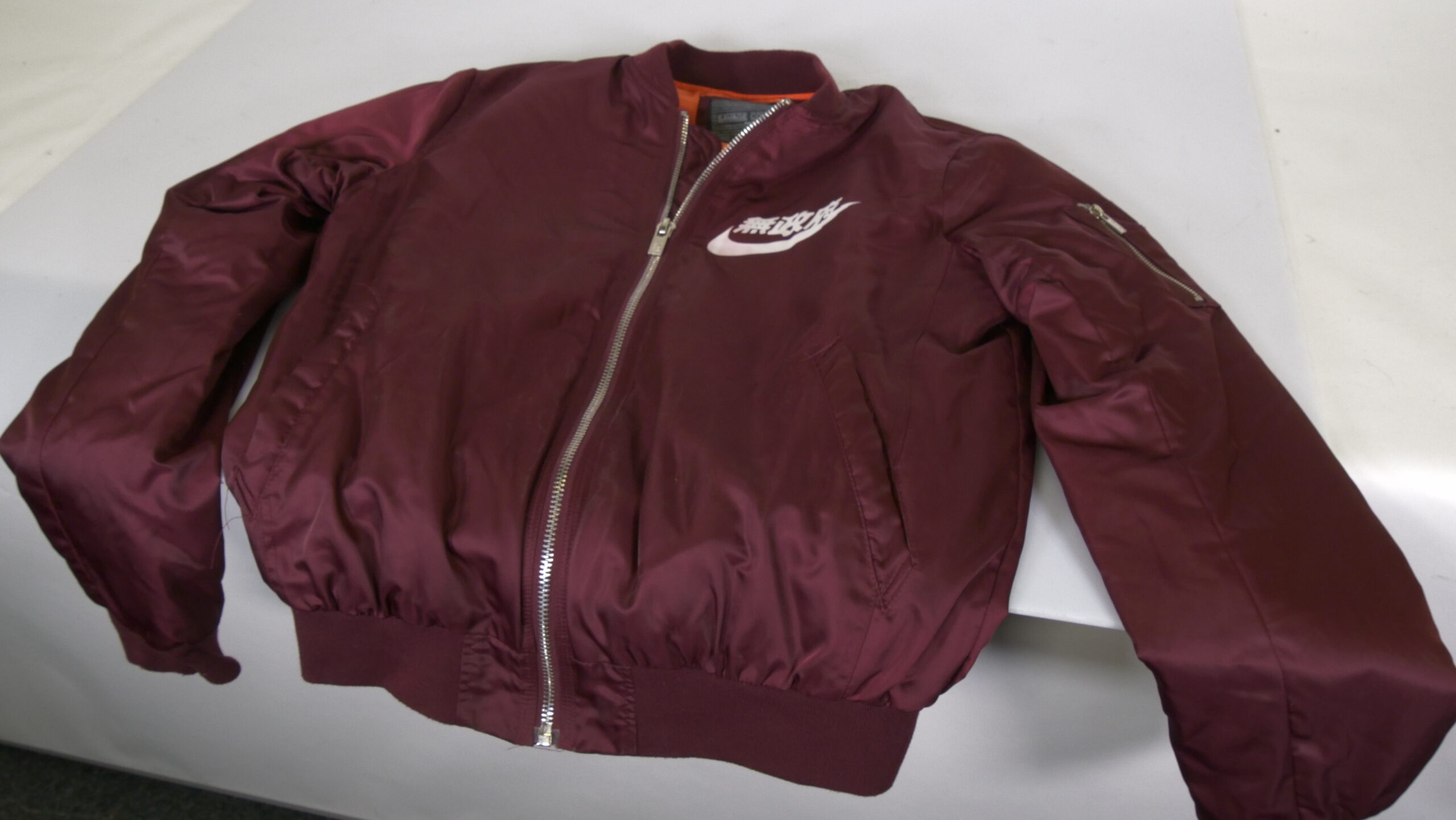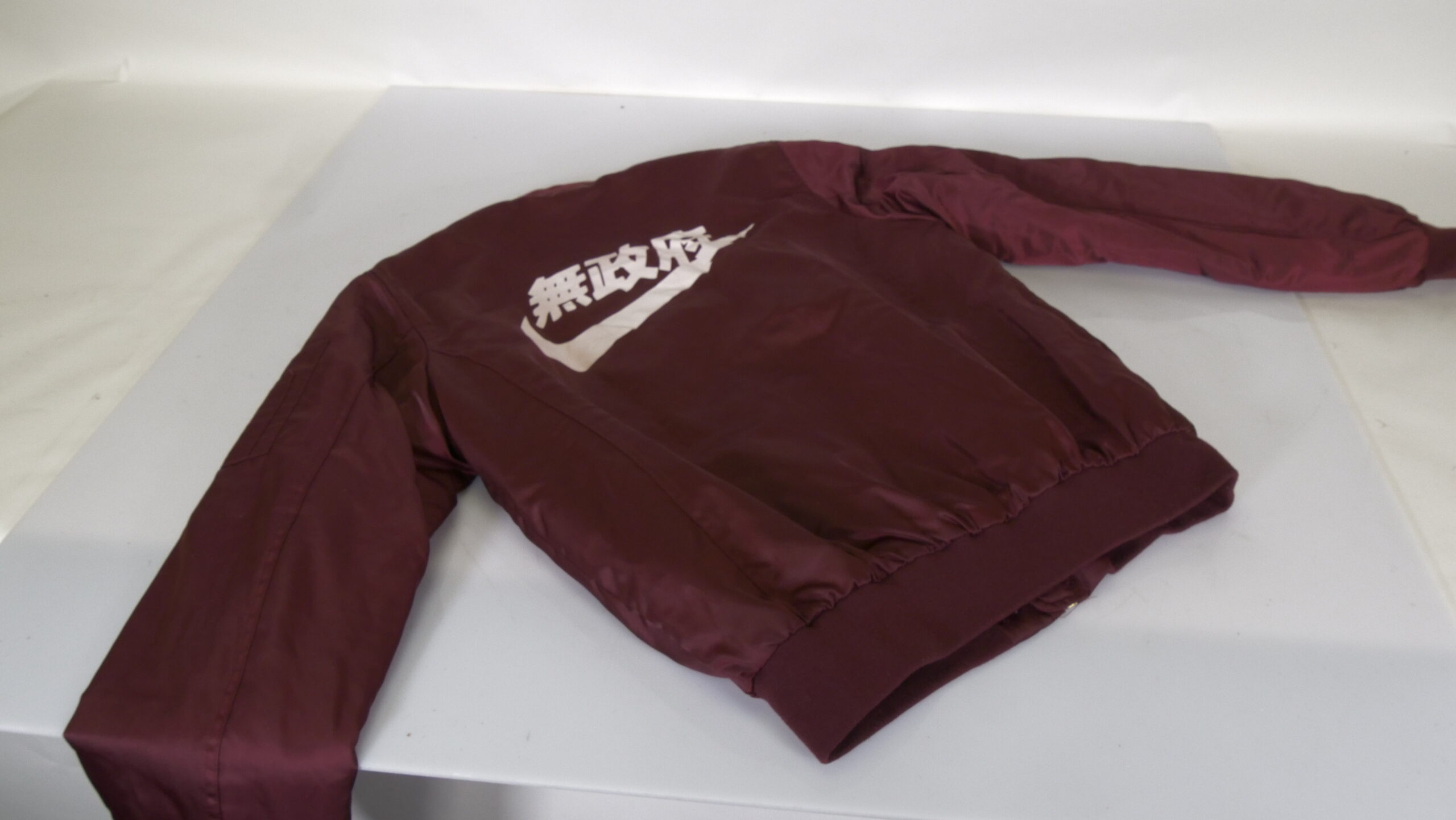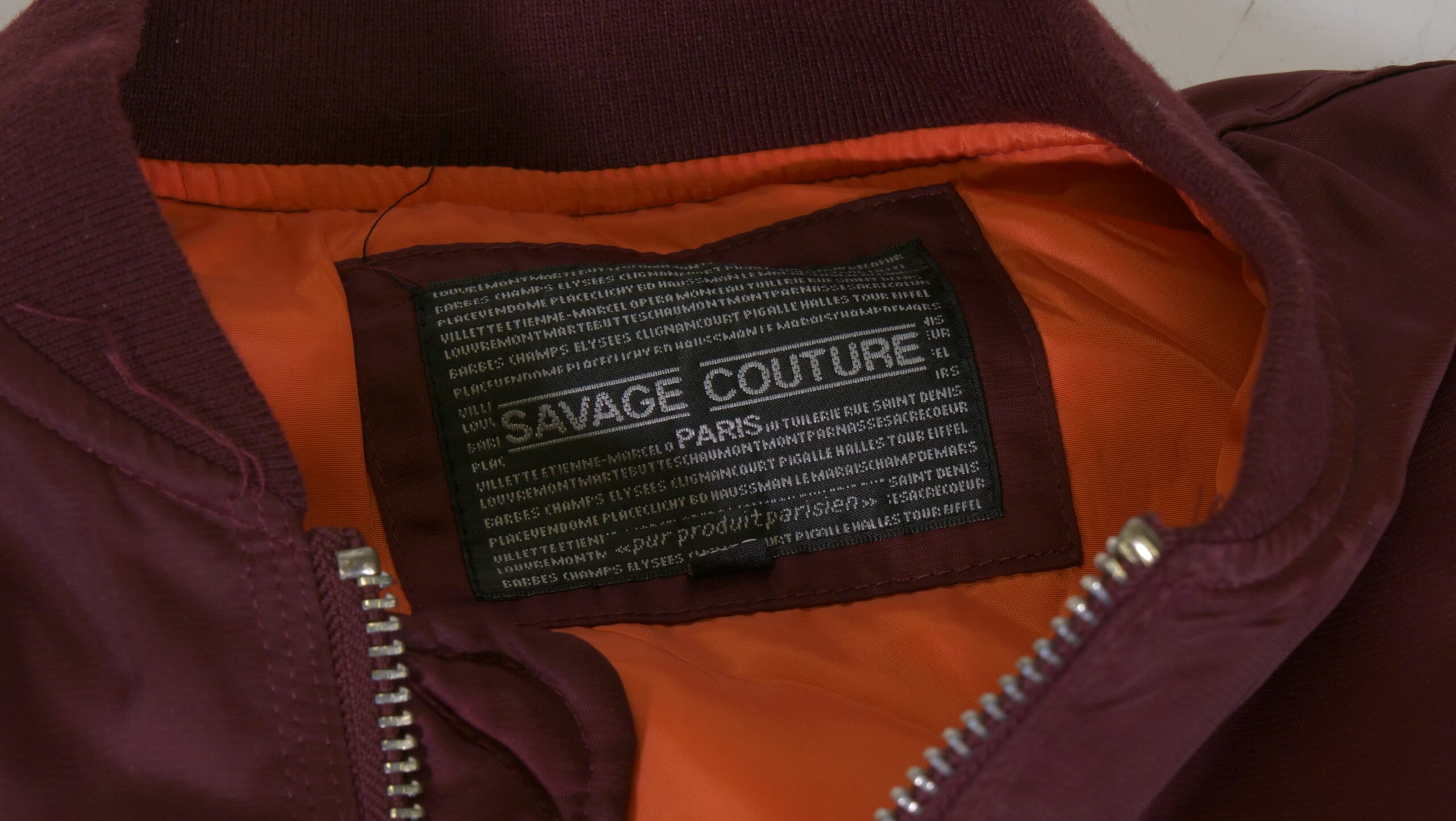 Stoer Savage Couture bomberjack in opvallende wijnrode kleur met feloranje voering. Op borst en rug een Japanse tekstprint in Nike-stijl, een kenmerkend voorbeeld van Savage Couture’s streetwear met een knipoog. Gemaakt van stevig, licht glanzend polyester en voorzien van metalen rits en elastische boorden. Comfortabel, opvallend en ideaal voor modebewuste liefhebbers van urban fashion en designer parodieën.