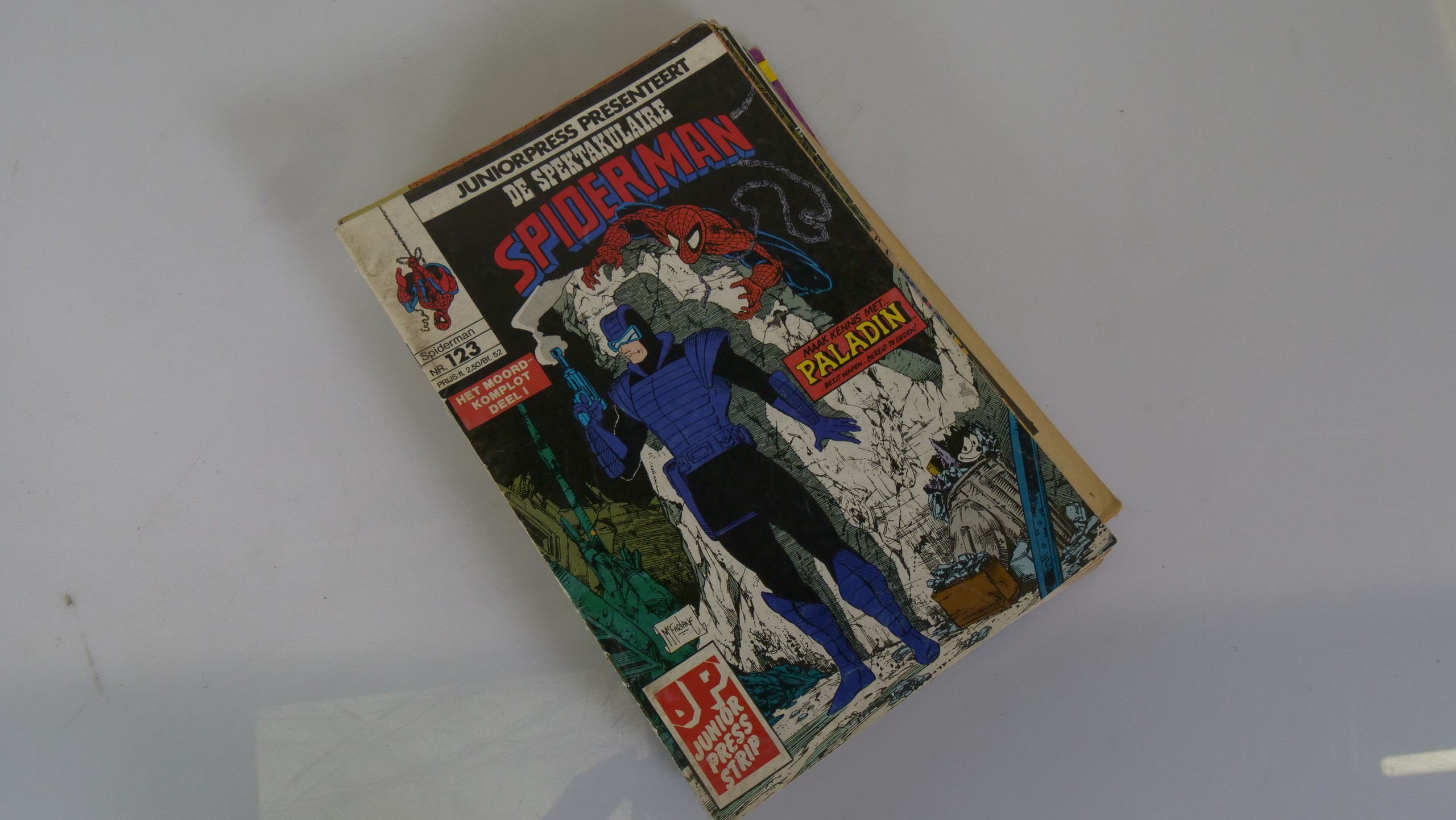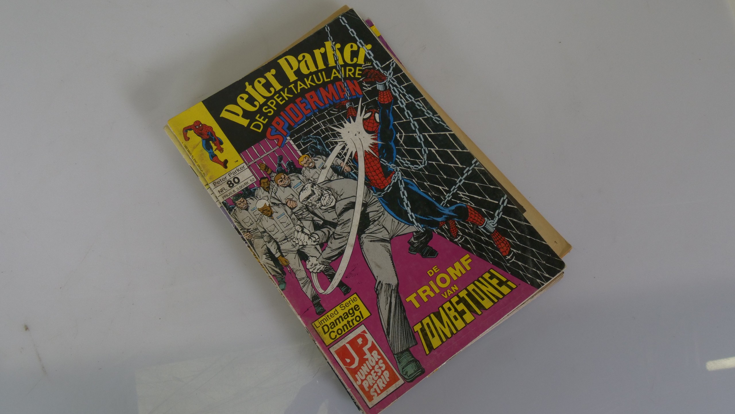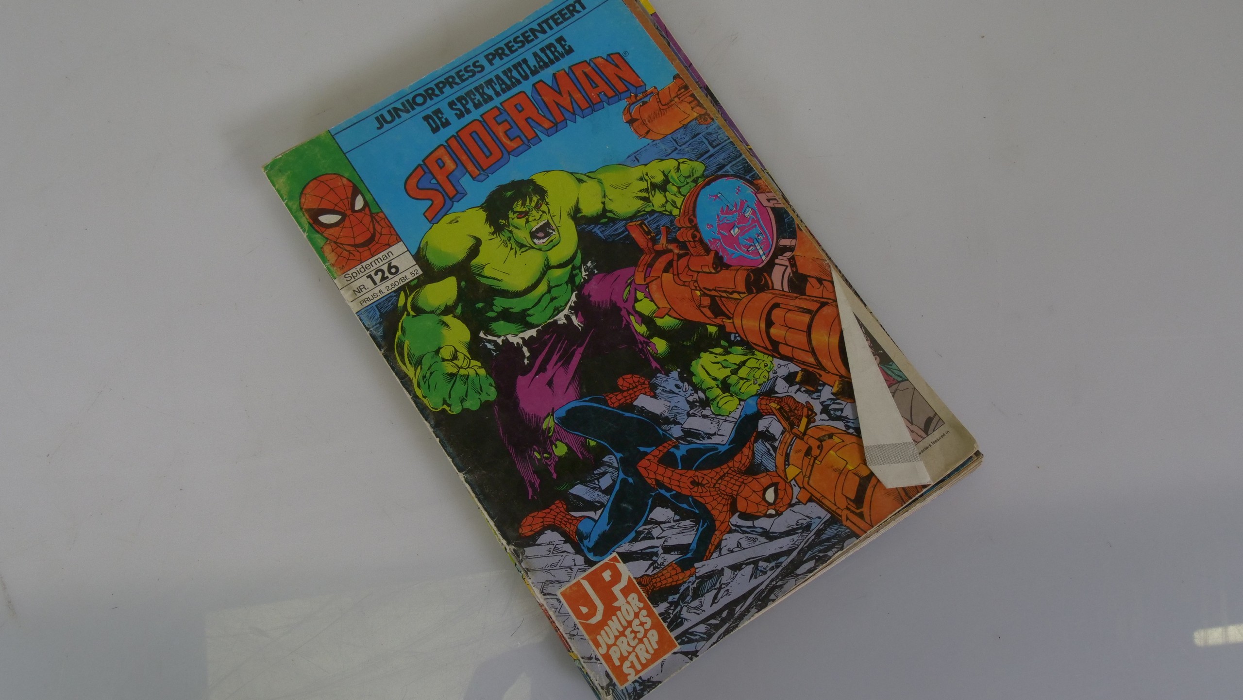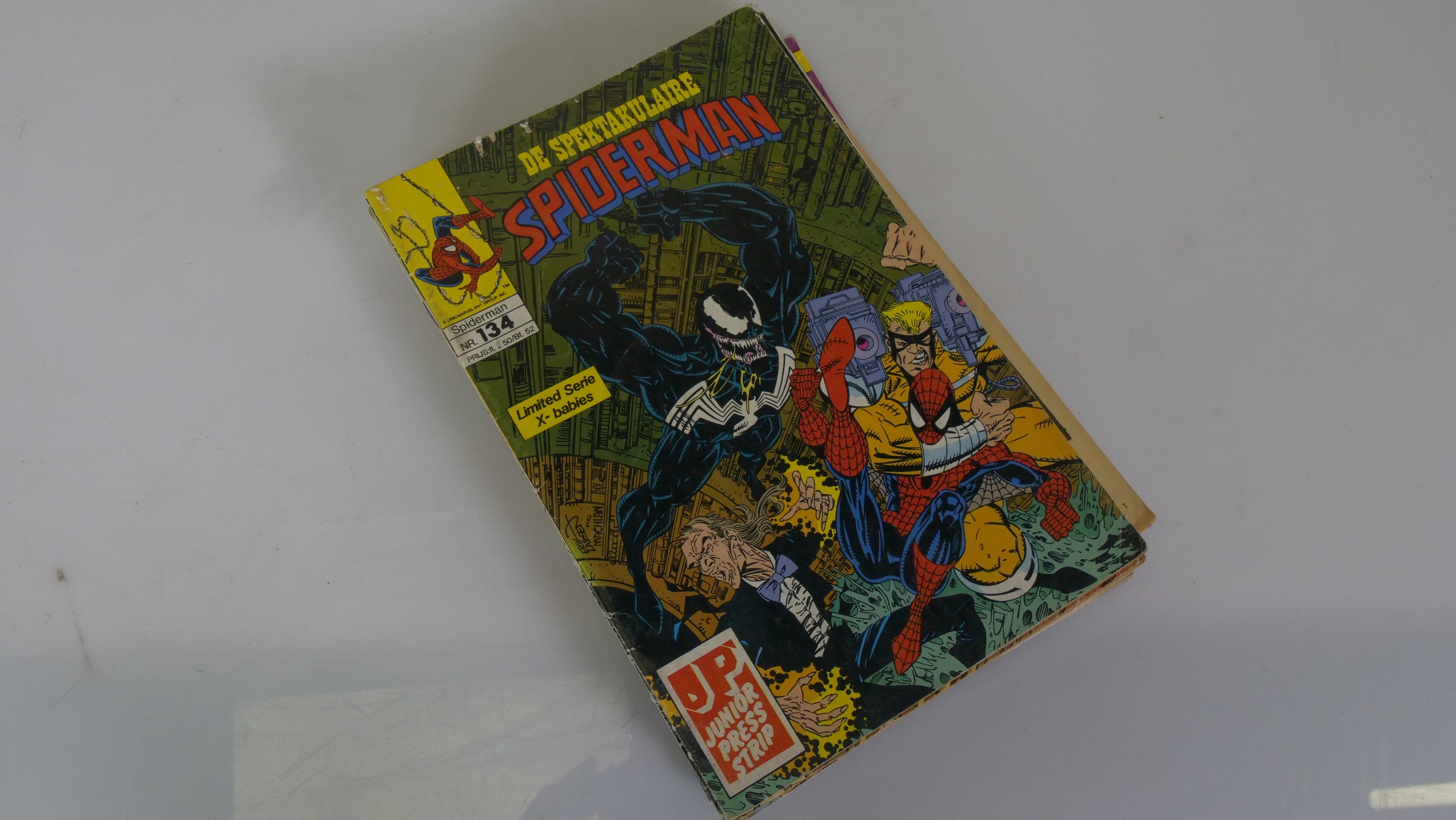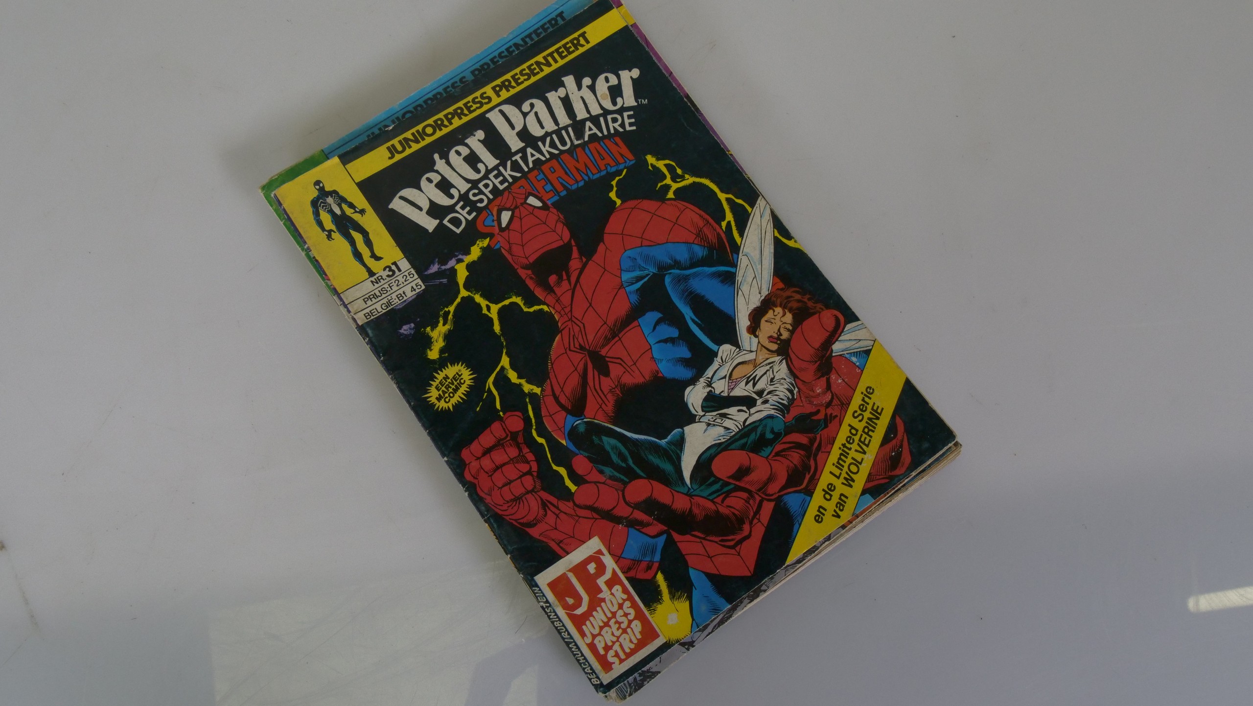 Verzameling van 18 Nederlandstalige “De Spectaculaire Spiderman” stripboeken uitgegeven door Junior Press in de jaren ’80 en ’90. Deze reeks bracht de avonturen van Marvel’s iconische webslinger naar Nederland, met klassiekers uit de Amerikaanse “Spectacular Spider-Man” serie.
